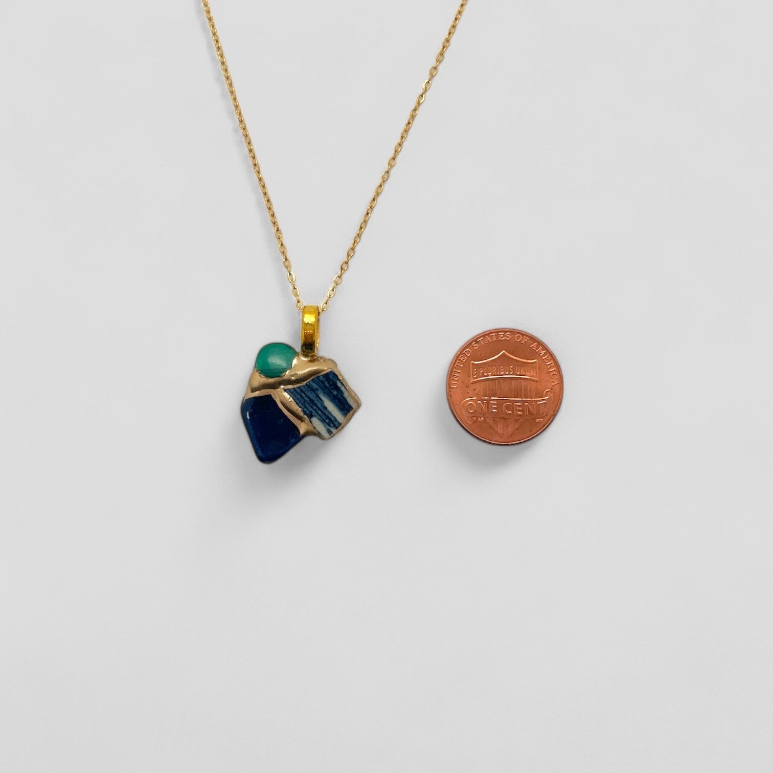 - 14K gold-plated surgical stainless steel (chain) (Metal Allergy-Safe), Brass (pendant hardware). The pendant features brass hardware, which may gently develop a bit of discoloration over time with exposure to sweat or moisture. This natural patina is part of the charm—each piece evolves uniquely and beautifully with wear.