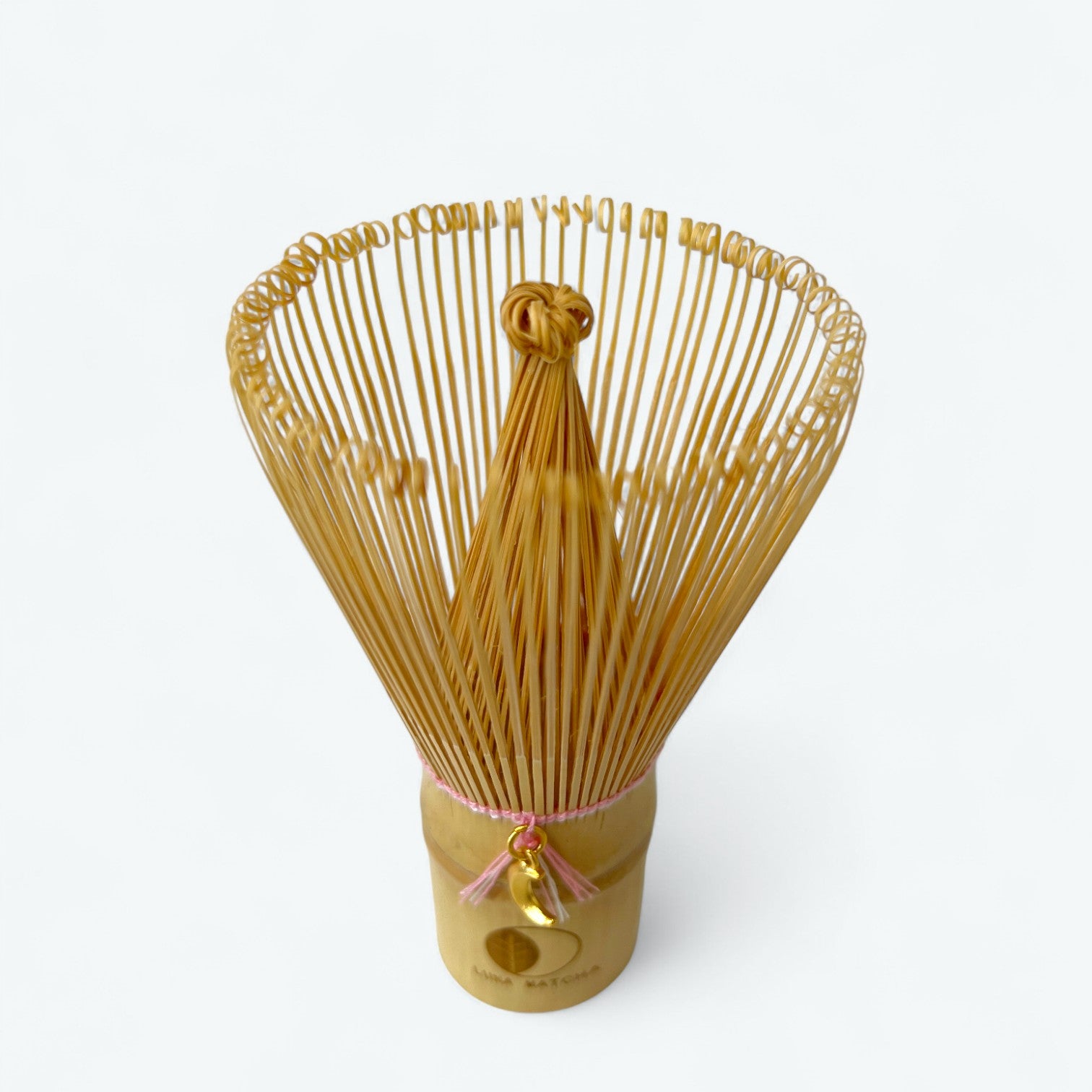 Bamboo Matcha Whisk with Pink String & Moon Charm – 100 Prongs